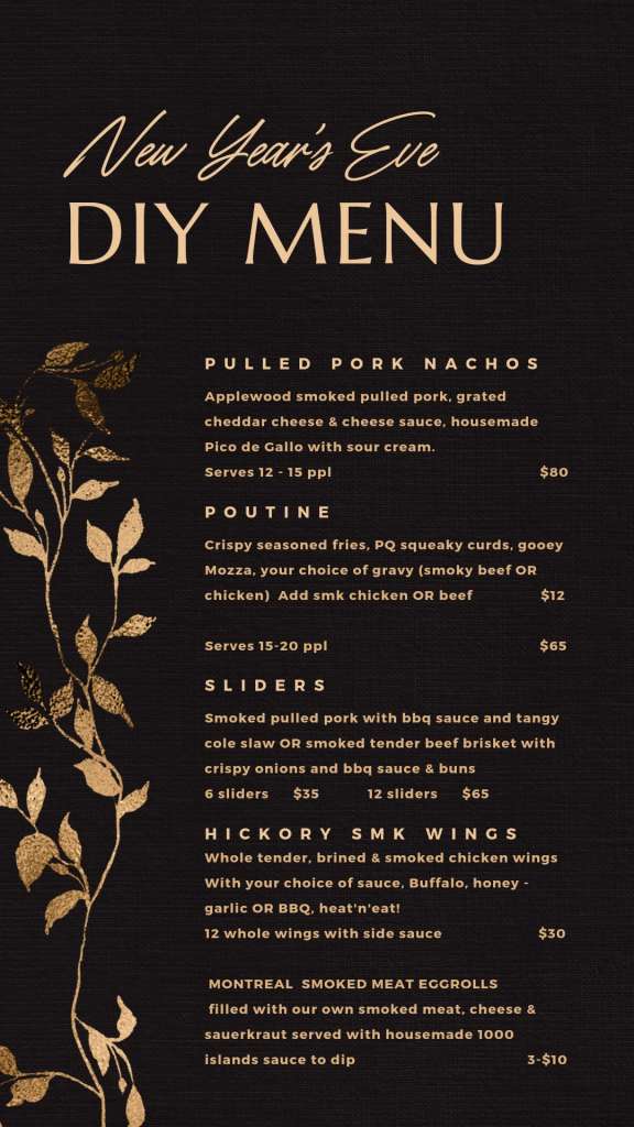 Again this year, we are partnering with East Coast Smokehouse for NYE meals & free delivery until 8:00pm. They will have a specific NYE menu. You can check that out via their Facebook page or the image below: https://www.facebook.com/photo?fbid=883186990637200&set=a.352846707004567